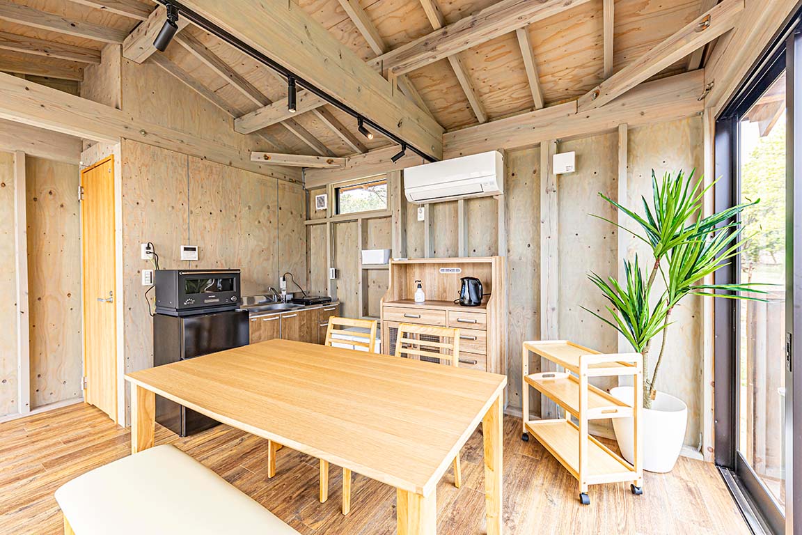 설비 냉장고, 에어컨, 전기 주전자, 식기류, 커틀러리, 컵류, 칼, 도마, BBQ 그릴, 집게, 스펀지, 주방 세제, 핸드워시, 소독제, 키친타올, 바스 타월, 페이스 타월, 욕실 매트, 참옷, 드라이어, 살충제, 벌레 퇴치제, 모기향 코일, 손전등, 가구
